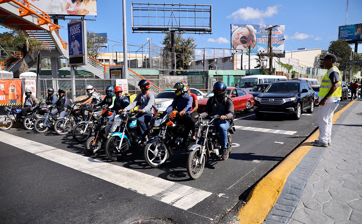 Santo Domingo.-Una bandada de motoristas le rodeó el vehículo como río impetuoso a piedra que se resiste a ceder. Uno golpeó con fuerza en un costado, invirtiendo la dirección del retrovisor, a la vez que cinco o seis de ellos cruzaban el semáforo en rojo ante la mirada indiferente de varios agentes de la Digesset, mientras el resto se detenía sobre la línea blanca que corresponde al peatón.