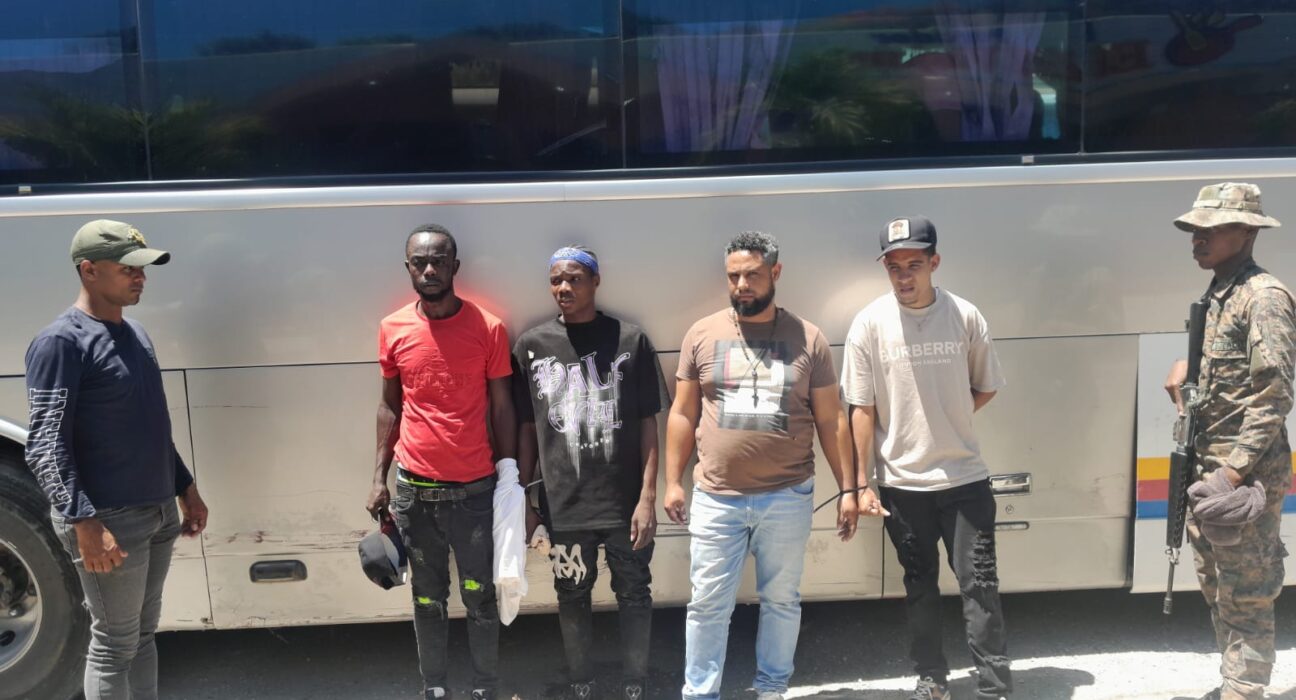 Azua.- El chofer y el cobrador de un autobús de transporte público fueron detenidos en Azua por miembros del Ejército de República Dominicana, cuando escondían debajo del piso del vehículo a dos nacionales haitianos indocumentados.