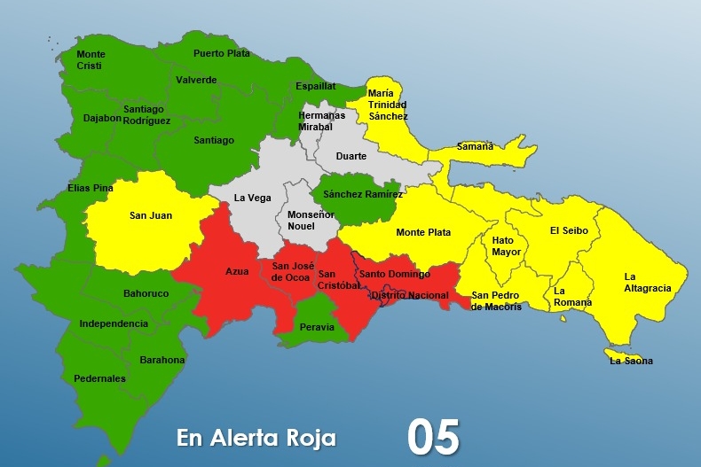 En virtud de lo establecido en la Ley 147-02 sobre Gestión de Riesgos, el COE amplió los niveles de alerta en las siguientes provincias y el Distrito Nacional: