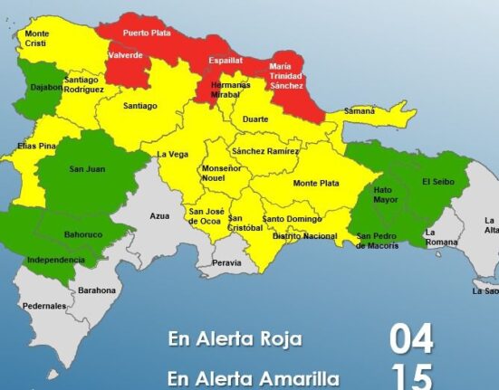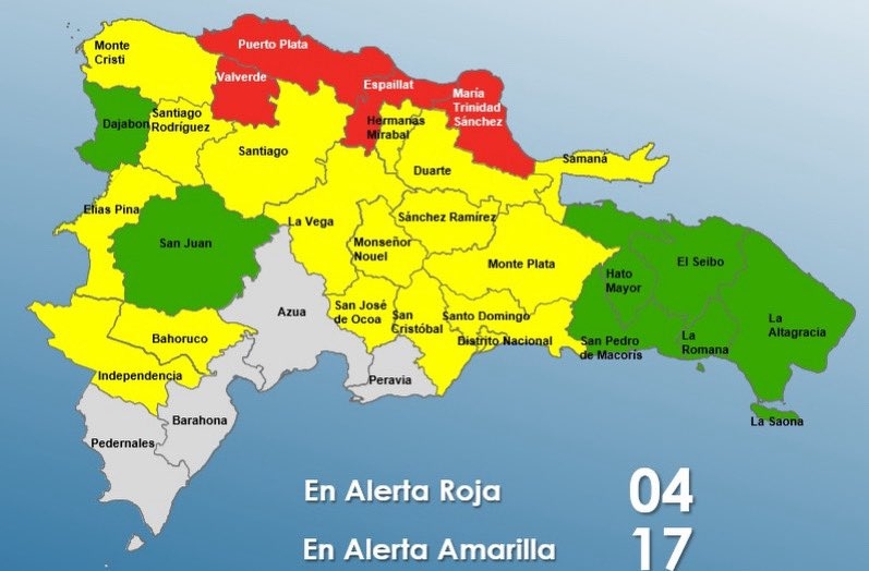 Las provincias en alerta roja son Puerto Plata, Espaillat, María Trinidad Sánchez y Valverde, donde se esperan condiciones de mayor riesgo por inundaciones y crecidas de ríos.
