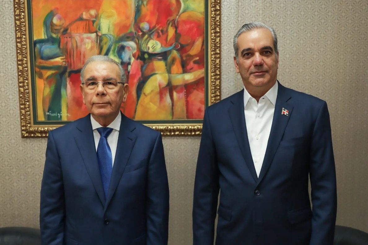 El presidente de la República, Luis Abinader es recibido este jueves por el expresidente Danilo Medina en la Casa Presidencial del Partido de la Liberación Dominicana (PLD).