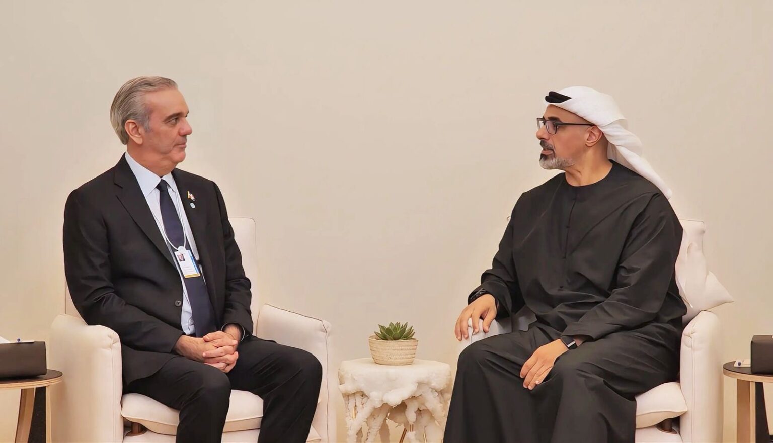 Abu Dhabi, Emiratos Árabes Unidos.— El presidente Luis Abinader sostuvo una audiencia con el Príncipe Heredero de Abu Dhabi, su alteza real Khaled bin Mohamed bin Zayed, con lo que completó una exitosa jornada por los Emiratos Árabes Unidos.