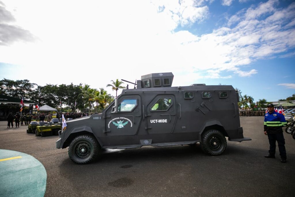 El mandatario realizó además la entrega formal de tres vehículos blindados FURIA modelo VBD-1, los primeros modelos de vehículos blindados ensamblados por la Industria Militar Dominicana, marcando un hito en el desarrollo de la capacidad industrial de defensa del país y fortaleciendo las unidades especializadas de las Fuerzas Armadas.