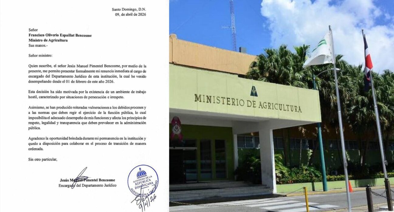 Santo Domingo, R.D. – El señor Jesús Manuel Pimentel Bencosme presentó su renuncia inmediata al cargo de encargado del Departamento Jurídico del Ministerio de Agricultura, posición que ocupaba desde el 1 de febrero de 2026.